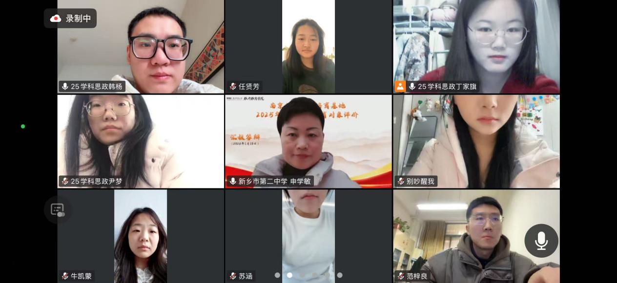 1月24日上午,学院线上举办2025年“思政名师大讲堂”第十期专题讲座。本次活动特邀新乡市第二中学高级教师、河南省学术技术带头人申学敏担任主讲嘉宾,以“整合·建构·活用:高中思想政治教材解析及教法指导——必修1&2”为主题,为学院青年教师及2024级、2025级学科教学(思政)专业研究生作专题分享。活动由学院许晓丽副教授主持。