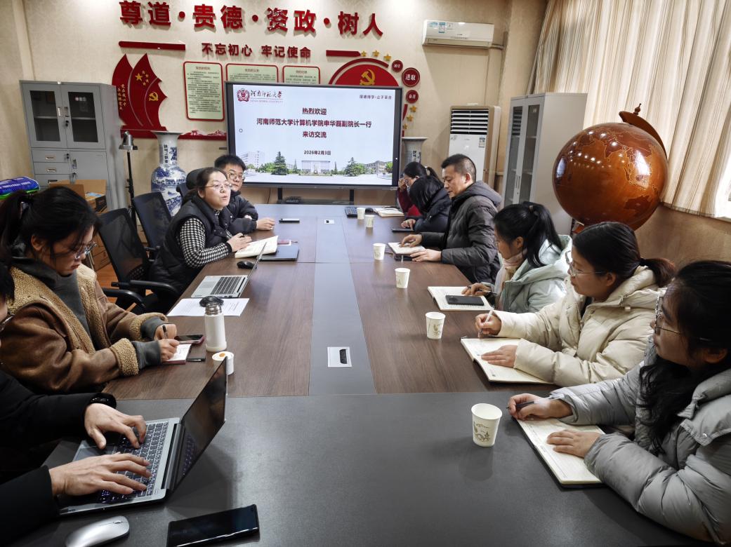 2月3日上午9点,计算机与信息工程学院(人工智能学院)副院长申华磊一行来学院交流座谈。副院长陈莉莉,相关负责老师参与交流。双方围绕学科建设、人才培养等议题展开深入对话,共同探讨合作前景。
