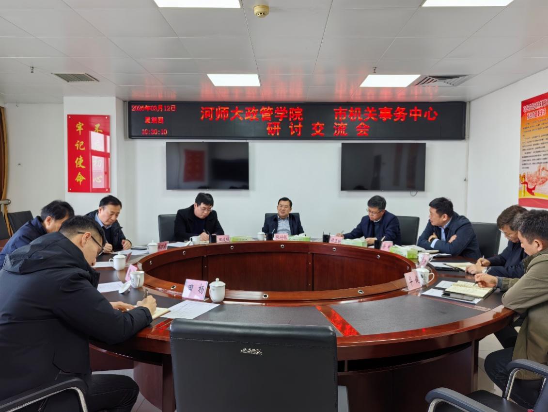 学院主要负责同志感谢新乡市政府长期以来对学校的关心支持,介绍了学院发展历程和学科建设情况,立足学院“十五五”发展战略,着眼公共管理战略需求、优化学科设置和人才培养模式,针对市机关事务中心管理实践,提出双方协同育人、公共管理研究实践合作、共同破解公共事务治理难题的基本思路和具体举措。
