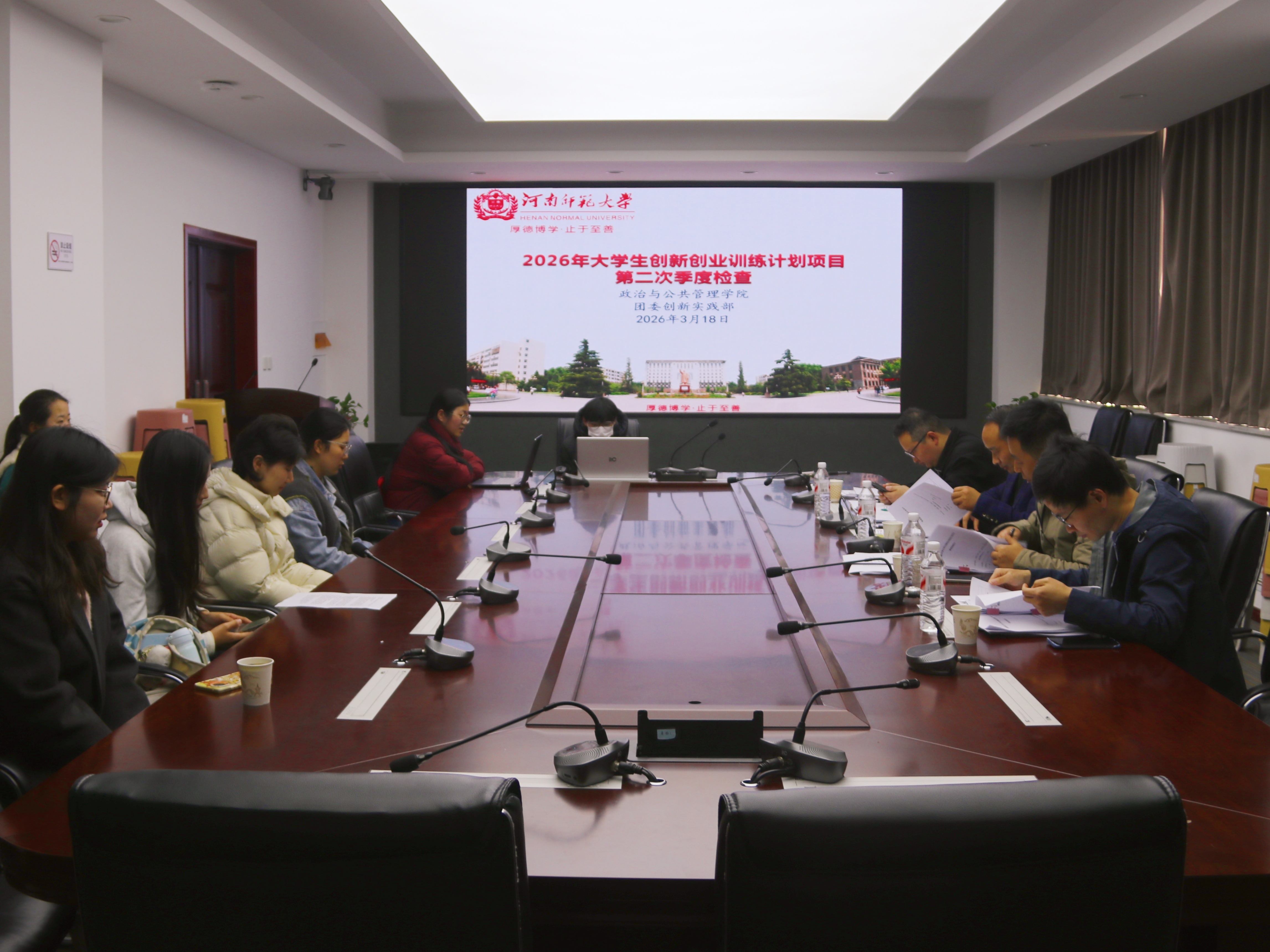 为深入了解学生创新创业项目进展情况,提升项目研究质量,3月18日下午,政治与公共管理学院于崇德楼517室举办2026年大学生创新创业训练计划项目第二次季度检查答辩会。学院教师张立国、毛哲山、王晓宾、徐晓攀担任评委,各项目负责人到场参与答辩。