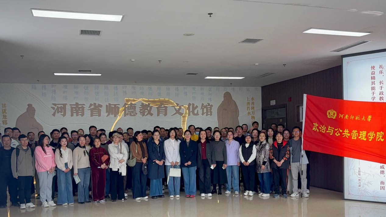 为深入学习贯彻习近平新时代中国特色社会主义思想和习近平总书记关于教育的重要论述,全面加强新时代师德师风建设,3月31日下午,政治与公共管理学院开展“心中有爱 脚下有路”主题师德教育活动,以健步走的形式,组织全体教师参观了河南省师德教育文化馆,开展开学“师德第一课”主题学习活动。