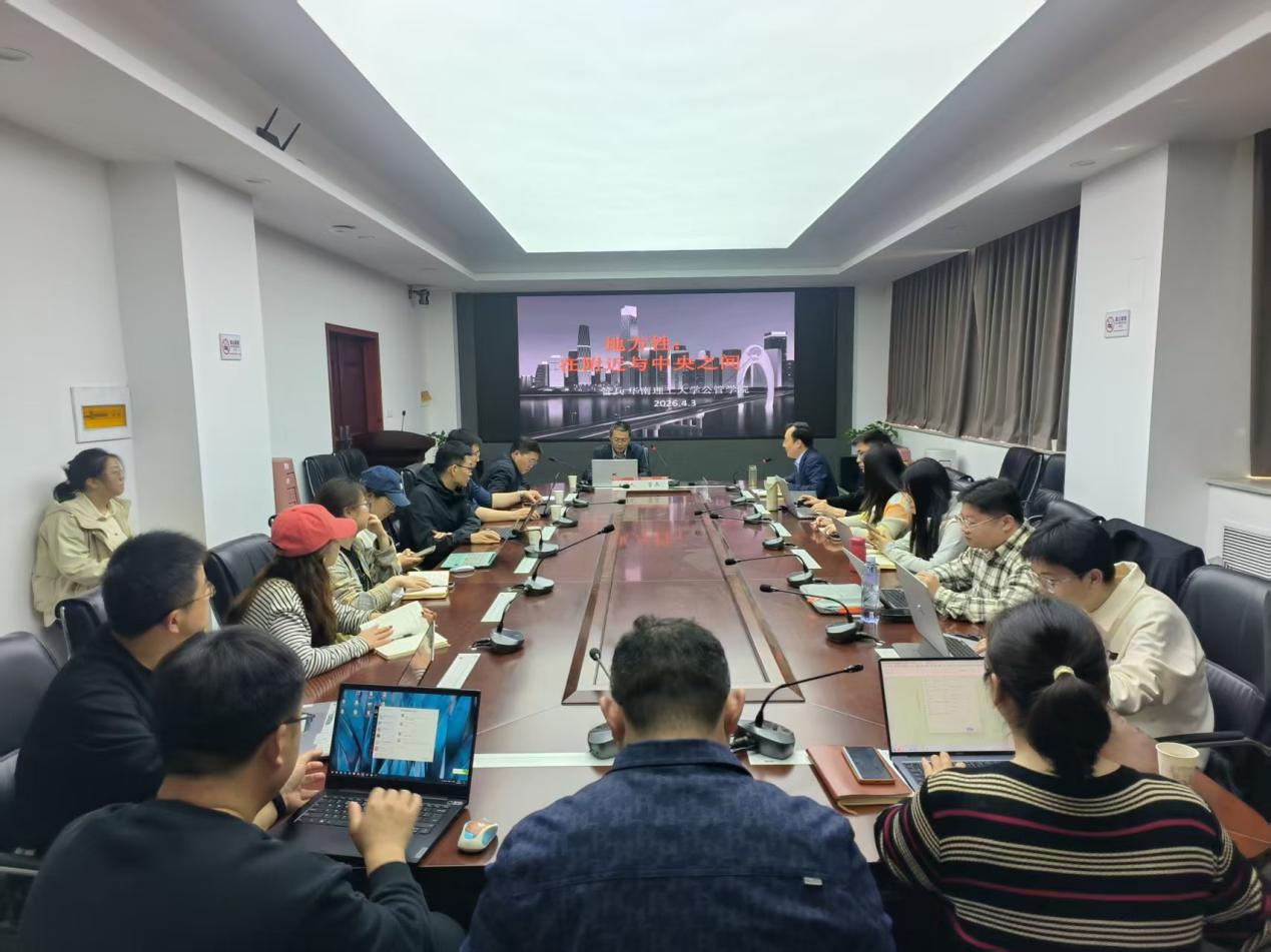 4月3日下午,应政治与公共管理学院邀请,华南理工大学公共管理学院管兵教授在517会议室为学院师生作了题为《地方性:在附近与中央之间》的学术报告。学院相关专业教师、研究生和本科生参与。讲座由学院院长韩万渠教授主持。