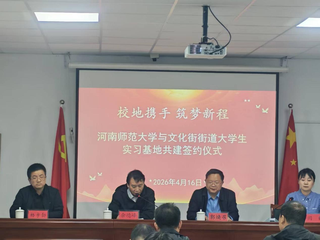 为深化校地合作,强化实践育人,4月16日,我院副院长佘德峰一行赴新乡市红旗区文化街办事处,举行校外实习基地签约暨揭牌仪式。文化街道办事处党工副书记、办事处主任郭焕召出席仪式并讲话,双方相关负责人参加活动。