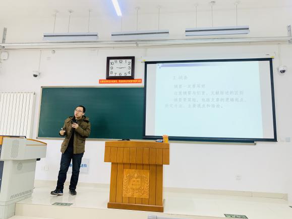 田甲乐副教授作关于《学术论文写作、发表经验分享》的主题讲座。田老师以扎实的学习内力和理论厚度为基础,分别从选题、撰写、投稿三大方面分享了自己撰写论文的优秀经验,详细介绍了论文选题的重要性,撰写论文的方式方法及论文投稿的注意事项。田老师指出,我们初学者要找到自己的研究兴趣,加强著作、论文的文献积累,并结合专业学习、时政热点和调研观察找到选题,更重要的是要着手撰写,心动不如行动。