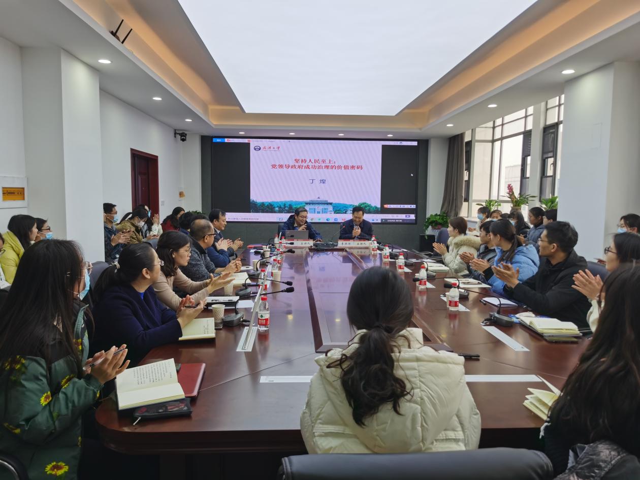 12月8日下午,应政治与公共管理学院邀请,国务院学位委员会学科评议组成员、武汉大学公共政策研究中心主任丁煌教授为我院师生作了题为《坚持人民至上:党领导政府成功治理的价值密码》的学术报告。报告由学院院长李洪河教授主持,我院部分教师、研究生、本科生参与。