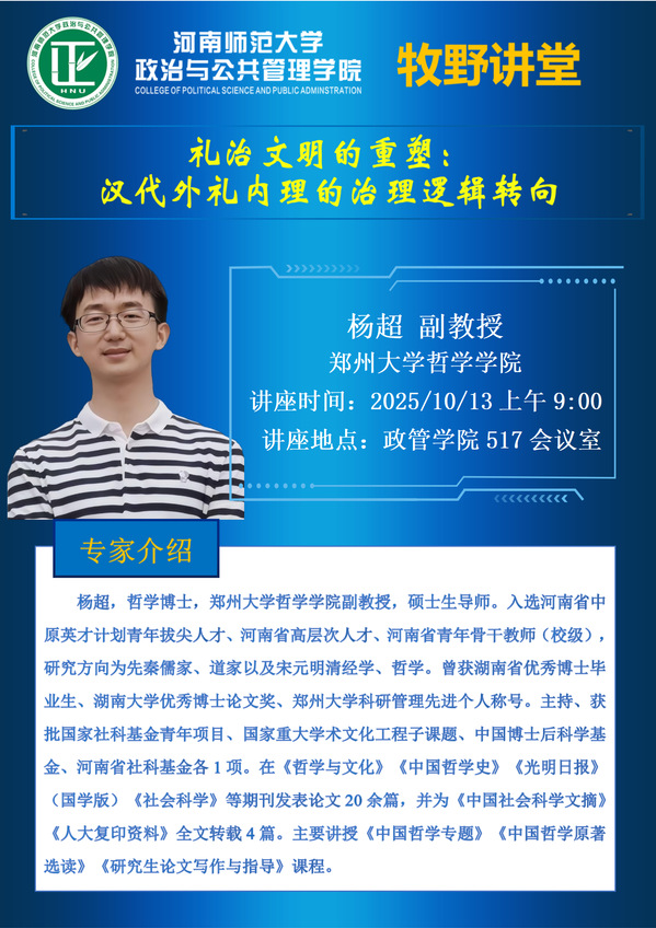 牧野讲堂讲座预告:礼治文明的重塑:汉代外礼内理的治理逻辑转向