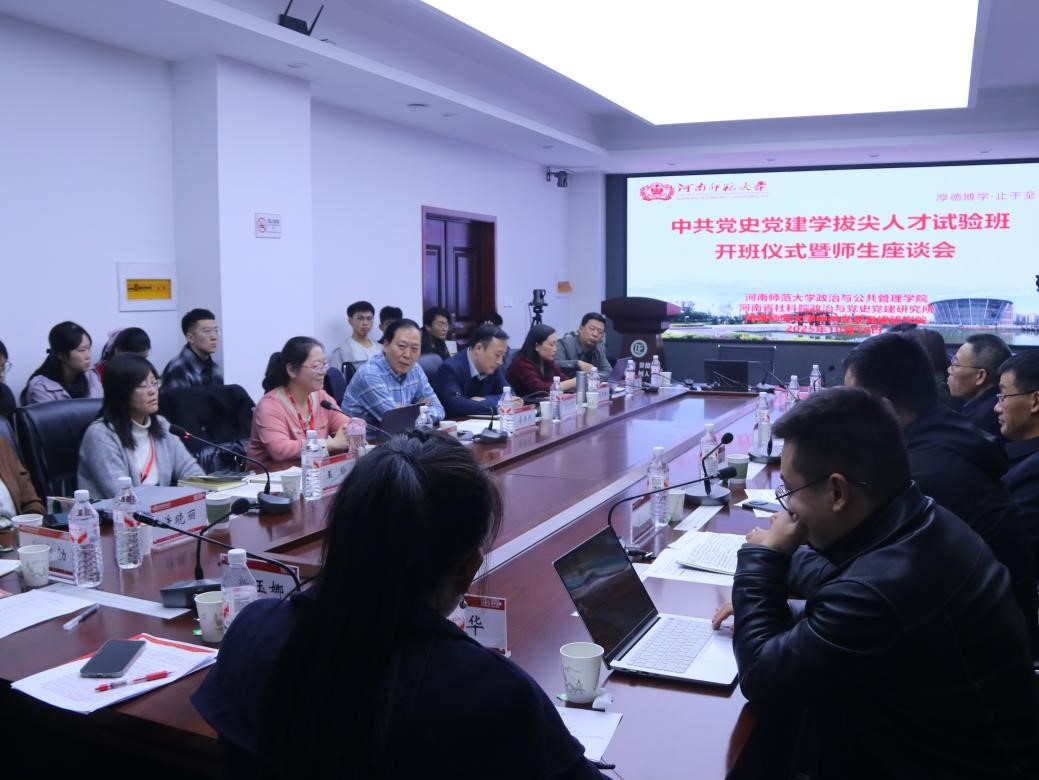 10月18日下午,政治与公共管理学院中共党史党建学拔尖人才试验班开班仪式暨师生座谈会于学院517会议室举行。河南省社科院政治与党史党建研究所所长唐金培、副所长刘刚、党的建设研究室主任杜娇、中共党史研究室主任王哲及助理研究员李金晖、政管学院导师团队以及试验班全体学员参会,开班仪式由学院副院长韩万渠主持。