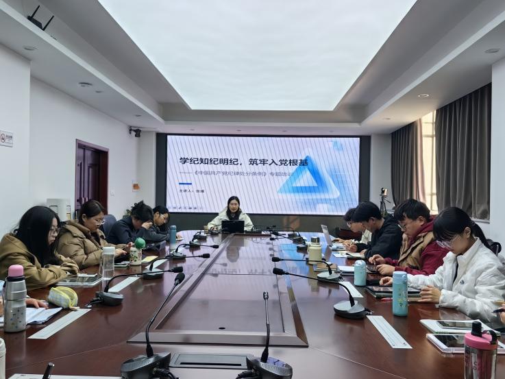 11月26日下午,学院分党校在517会议室为2025年下半年入党积极分子培训班学员举办专题解读会,集中学习《中国共产党纪律处分条例》。学院党委副书记、纪委书记张瑾作题为《学纪知纪明纪 筑牢入党根基》的主题报告。