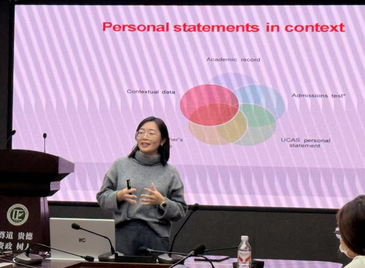 12月9日,两场英文工作坊接续开展,在上午场《出国留学以及英语能力提升》中,张寒昱从留学申请规划、语言能力进阶等维度,分享了英国华威大学求学的经验,针对“如何提升学术英语实用性”“留学文书的核心逻辑”等问题给出了具体建议;在晚间场《国际组织任职场景中的沟通:以Presentation为例》中,则聚焦国际职场高频技能,通过拆解Presentation的结构设计、表达技巧,帮助学生掌握“用简洁逻辑传递专业信息”的沟通方法。