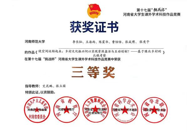 近日,第十七届“挑战杯”河南省大学生课外学术科技作品竞赛结果正式揭晓。学院学子踊跃参赛、奋勇争先,凭借扎实的专业功底与突出的创新能力斩获佳绩,共4个项目脱颖而出荣获省级奖项,其中一等奖2项、二等奖1项、三等奖1项,充分展现了政管学子在学术科研与实践创新领域的过硬实力。