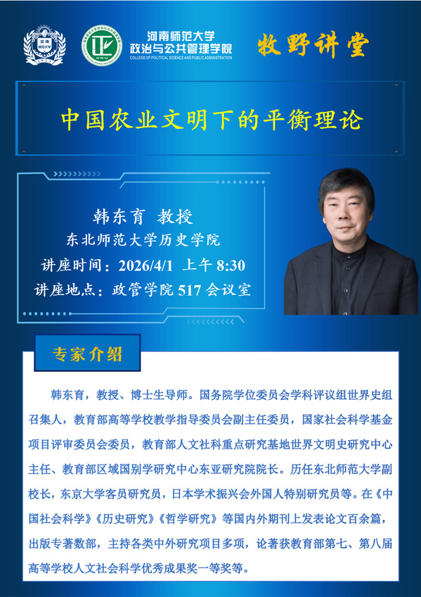 牧野讲堂讲座预告:中国农业文明下的平衡理论