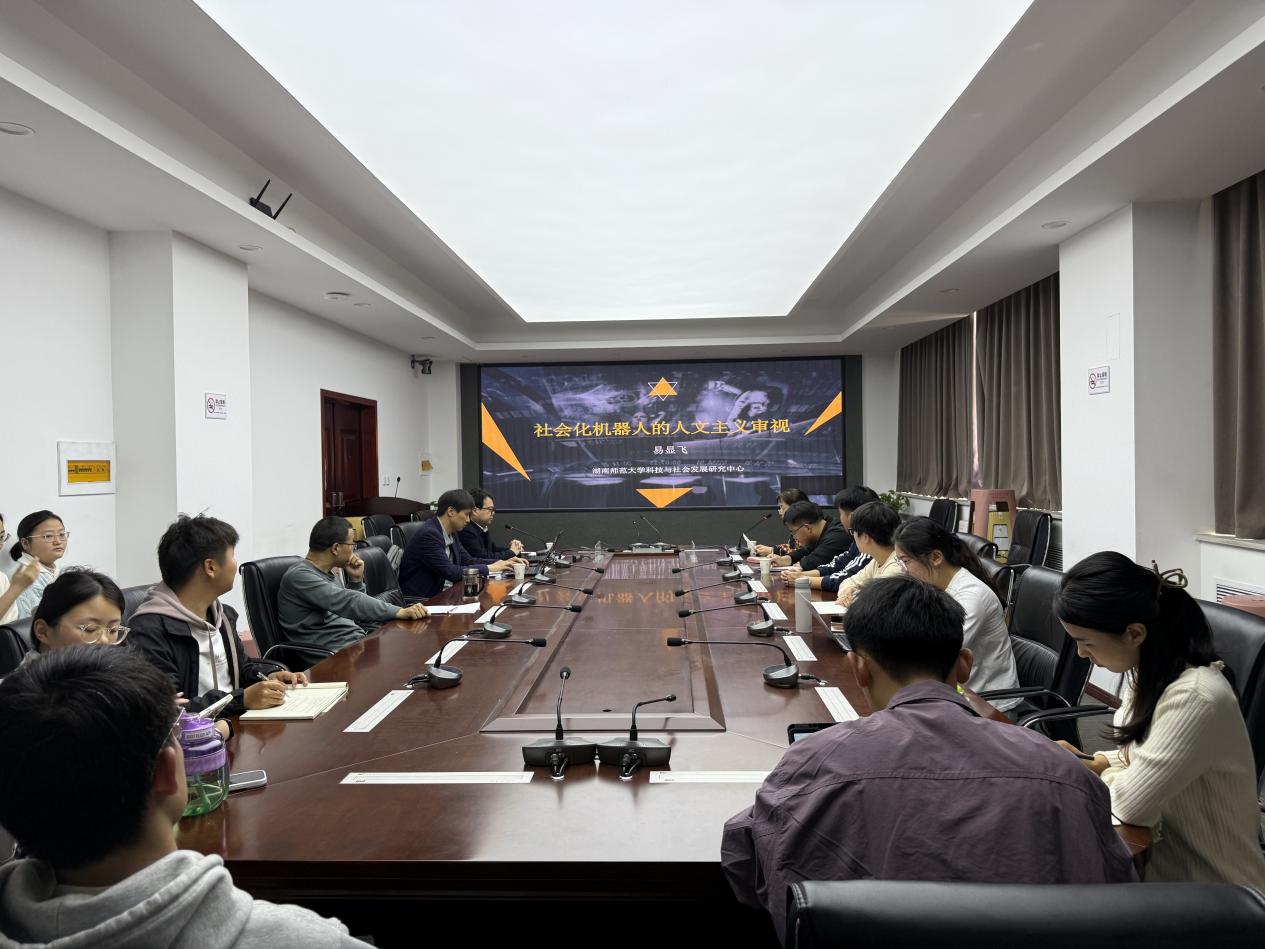 3月27日下午,应政治与公共管理学院邀请,湖南师范大学马克思主义学院易显飞教授在517会议室为学院师生作了题为《社会化机器人的人文主义审视》的学术报告。学院相关专业教师、研究生和本科生参与。讲座由哲学系冯烨教授主持。