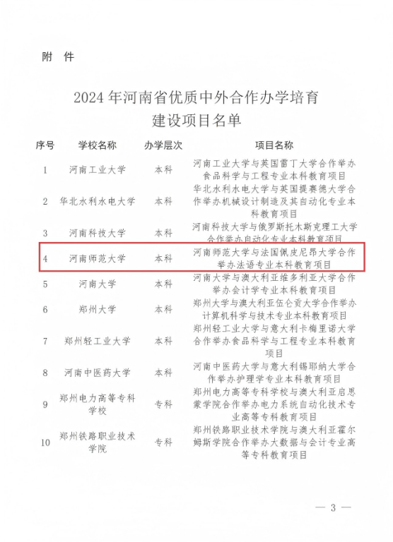 ◆河南省首批优质中外合作办学培育建设项目、省级一流专业建设点(法语)