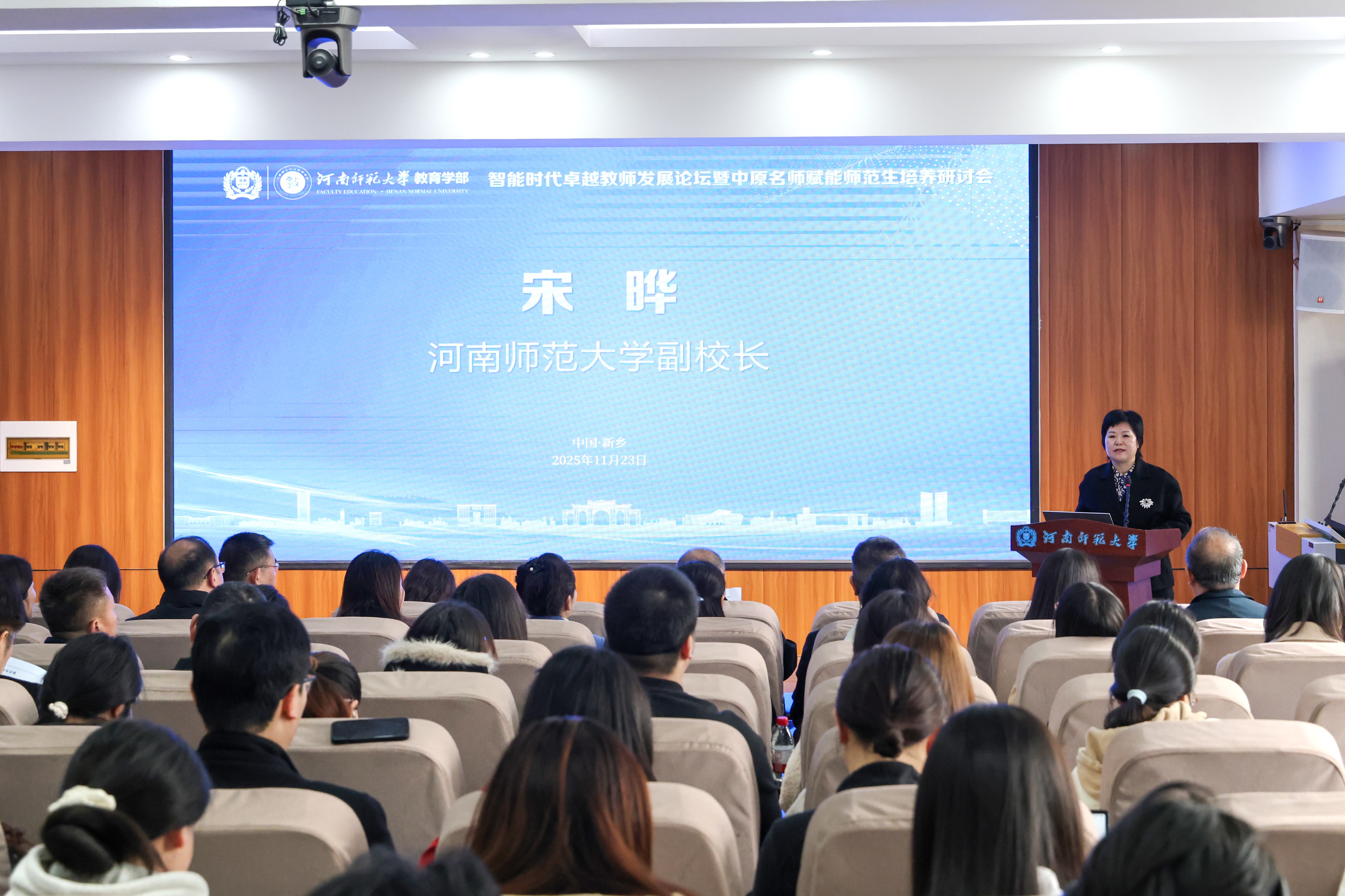 11月23日,“智能时代卓越教师发展论坛暨中原名师赋能师范生培养研讨会”在教育学部举办。河南省中原名师、教育领域专家及学校师生代表300余人齐聚一堂,共探智能时代教师培养新路径,助力基础教育高质量发展。河南省教育厅教师工作处副处长肖向毅、副校长宋晔出席论坛开幕式并致辞,会议由教育学部部长罗红艳主持。