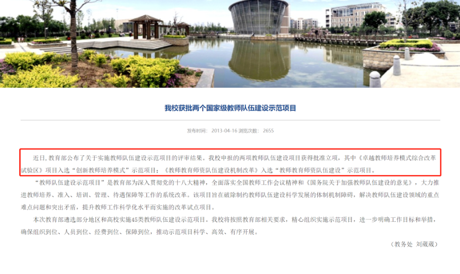 11.教育部教师队伍建设“创新教师培养模式”示范项目:《卓越教师培养模式综合改革试验区》