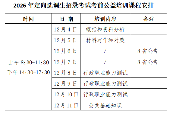 为助力我校毕业生高效备战2026年定向选调生招录考试,我校特举办为期6天的考前专项培训,具体安排如下: