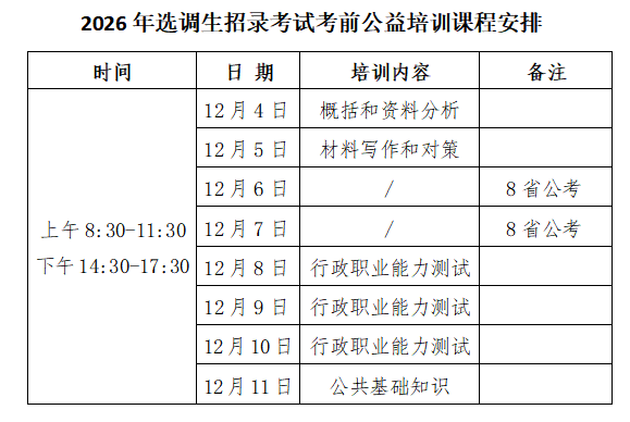 为助力我校毕业生高效备战2026年定向和非定向选调生招录考试,我校特举办为期6天的考前专项培训,具体安排如下: