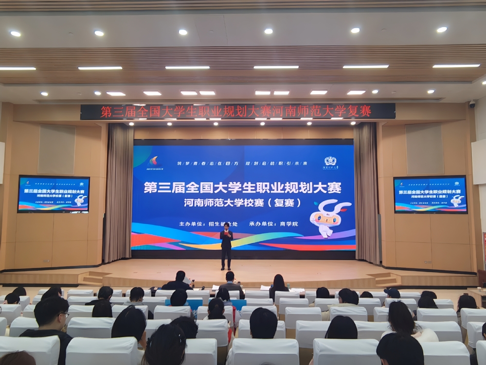 12月15日,第三届全国大学生职业规划大赛河南师范大学校赛复赛在东区实训楼五楼报告厅举行。比赛邀请省内各高校职业规划指导专家担任评委,相关职能部门负责人、各学院辅导员及学生代表500余人到现场观摩学习。
