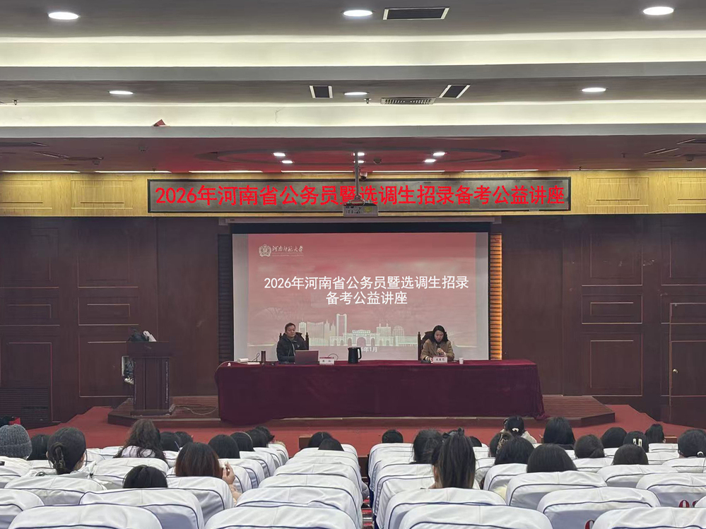 为助力学生明晰公务员与选调生报考路径,攻克备考难关,全面提升公职就业竞争力。1月6日下午河南省选调生暨公务员招录备考公益讲座在模拟法庭顺利举办。本次活动由法学院党委副书记史春花主持,特邀我校政治与公共管理学院副教授陈灿老师担任主讲,商学院、文学院和法学院学生共同参与。