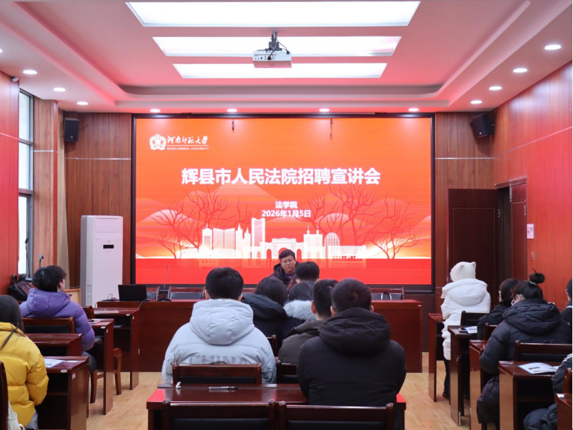 为助力2026届毕业生就业,帮助法学学子深入了解基层法院招聘政策与职业发展路径,2026年1月5日下午,我院邀请辉县市人民法院党组成员、政治部主任王新恒莅临崇法楼301会议室,开展专场招聘宣讲会。学院2026届毕业生积极参会,宣讲会由2022级辅导员杨俊主持。