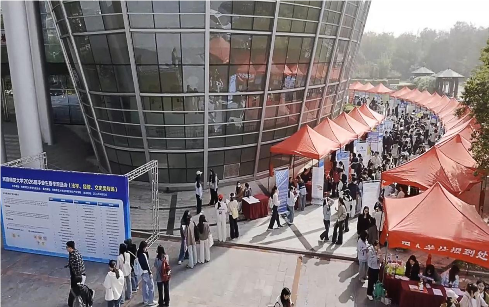 为深入贯彻落实党中央、国务院关于高校毕业生就业工作部署,助力2026届毕业生顺利就业,搭建供需精准对接平台,4月10日,由我校招生就业处主办、法学院承办的河南师范大学2026届毕业生春季双选会(法学、经管、文史类专场)在东校区成功举办。招生就业处处长康海军,法学院党委书记于庆生、法学院副院长郭少飞等领导班子成员和来自法学院、商学院等院系的近3000名学生参与了活动。