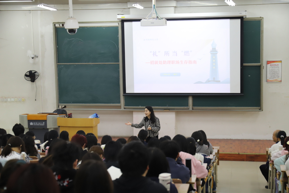 陶宁老师以《“礼”所当“燃”——学生助理职场生存指南》为题,以“我们不是NPC”为引,直击学生助理在身份认知上的常见误区。她指出,助理工作绝非简单的“接电话、跑跑腿”,而是穿上“超级英雄战衣”、装上“人情世故操作系统”的职业起点。从微笑服务、指示手势、递物接物,到交通引领、送别礼仪,再到“电话侠”的通信修养与“细节控”的自我管理,陶老师层层递进,生动诠释了“礼仪不是束缚,而是最亮眼的名片”。她特别强调,招生就业季中,学生助理是考生心中的“白月光”、企业HR眼中的“第一印象”,一言一行皆代表师大的形象与温度。