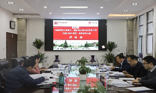 11月28日上午,河南师范大学第十一届研究生科技文化节“学业·学术·学风”优秀论文大赛评审会在崇文楼二楼会议室举行。河南师范大学党委研究生工作部部长王文豪、社会科学处副处长张继汝、政治与公共管理学院副院长韩万渠、生命科学学院副院长姜丽娜、电子与电气工程学院副院长王芳、数学学院特聘教授刘晓等共同担任评委,会议由文学院副院长李占伟主持。