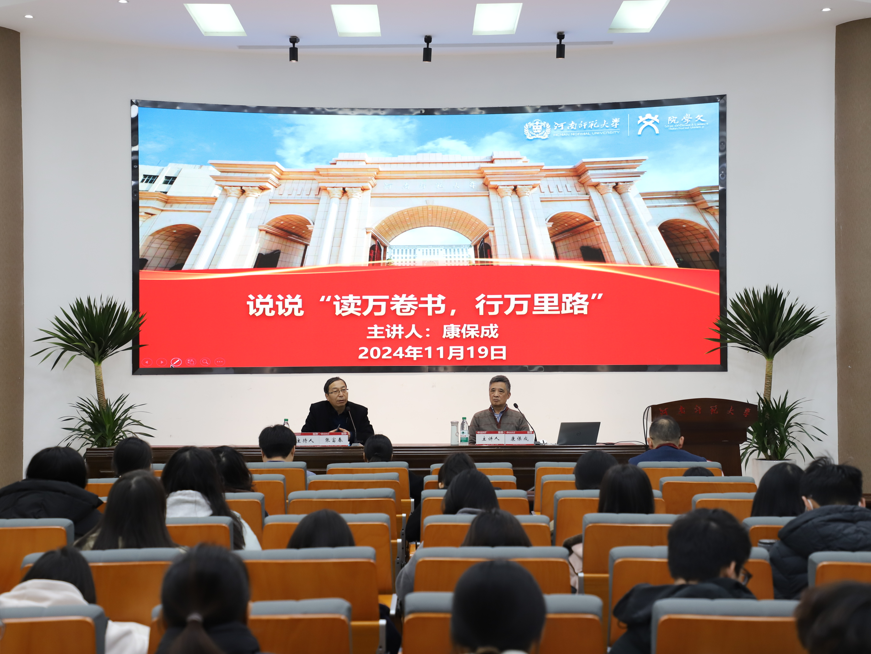 11月19日、20日和22日,中山大学康保成教授应邀做客“银龄讲坛”,在崇文楼一楼报告厅分别作题为“说说‘读万卷书,行万里路’”“《狸猫换太子》故事的形成与大小传统的叙事策略”“中国早期口头文学传统与研究刍议”的三场学术讲座。讲座由古代文学教研室主任张富春主持,学院学生积极参与学习。