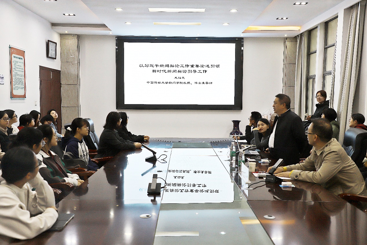 10月12日上午,中国传媒大学新闻学院王灿发教授应邀做客“卫风讲堂”,在崇文楼二楼会议室为学院师生作题为“以习近平新闻舆论工作重要论述引领新时代新闻舆论引导工作”的学术讲座。讲座由文学院副院长屈会超主持,学院四十余名学生参与。