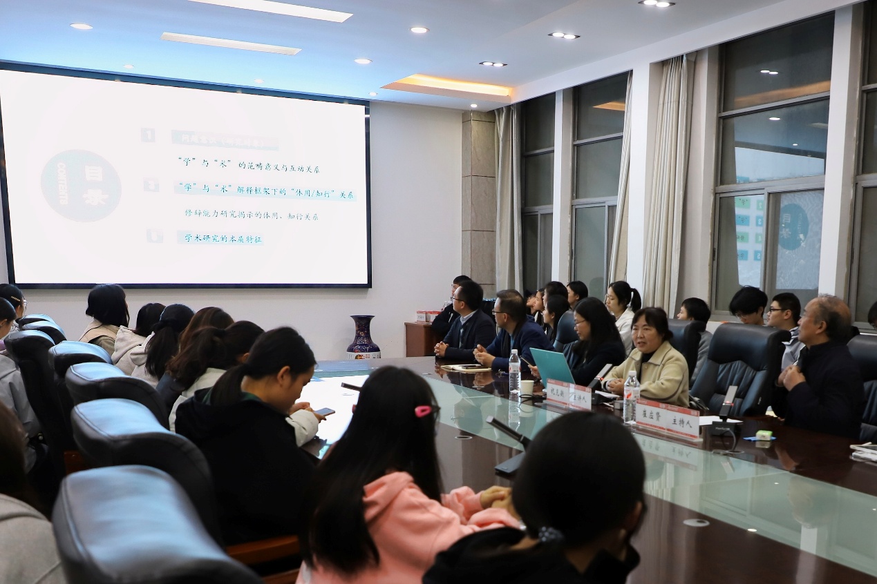 10月22日晚,复旦大学祝克懿教授应邀做客“卫风讲堂”,在崇文楼二楼会议室为文学院师生作题为“‘学’与‘术’对话演绎的体用与知行关系”的学术讲座。讲座由文学院崔应贤教授主持,学院50余名学生参与学习。