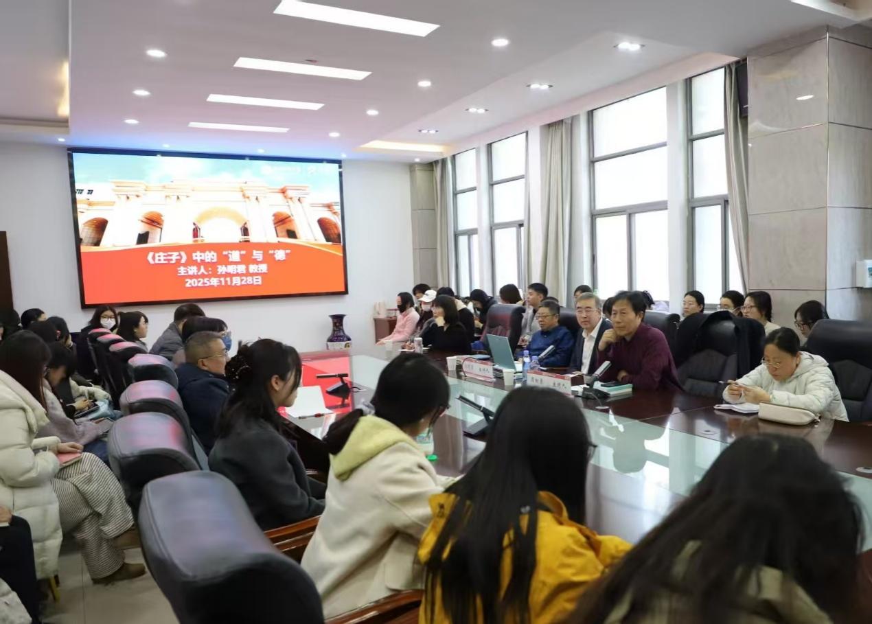 11月28日下午,清华大学孙明君教授应邀做客卫风讲堂,在崇文楼二楼会议室为文学院师生作题为“庄子中的‘道’与‘德’”的学术讲座。讲座由文学院教授周相录主持,学院50多名师生参与学习。