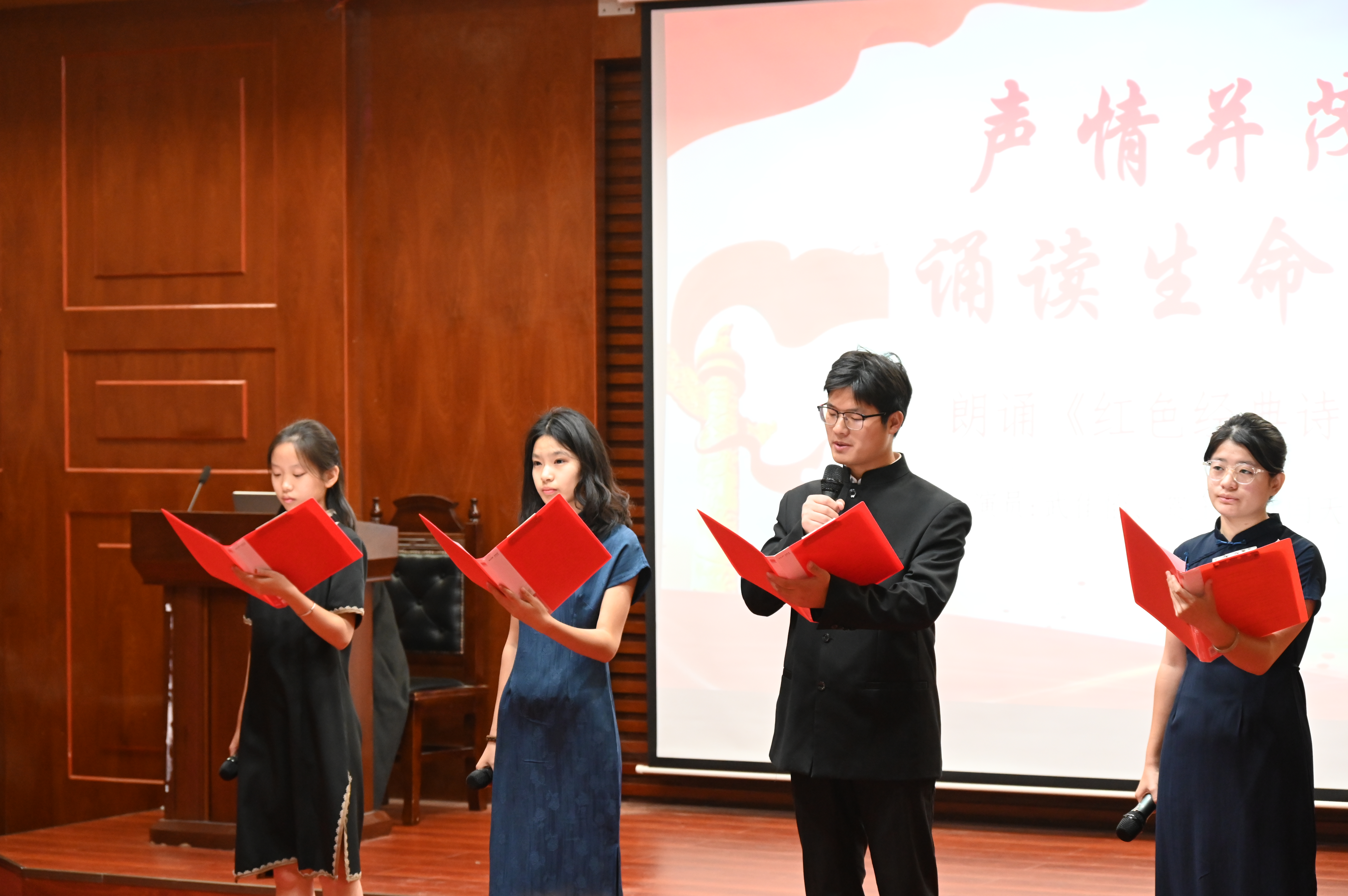 朗诵团的活动丰富而深入,贯穿全年,形成了鲜明的品牌特色。社团定期举办红色经典专场演诵会,如“声承文脉·诵响未来”、“声传烽火志·诵续中华魂”等,以朗诵、情景剧等多元艺术形式,打造沉浸式的美育与思政课堂。同时,朗诵团积极推动“红色经典进校园”活动,走进附属小学、实验中学等,让红色基因浸润青少年心灵。