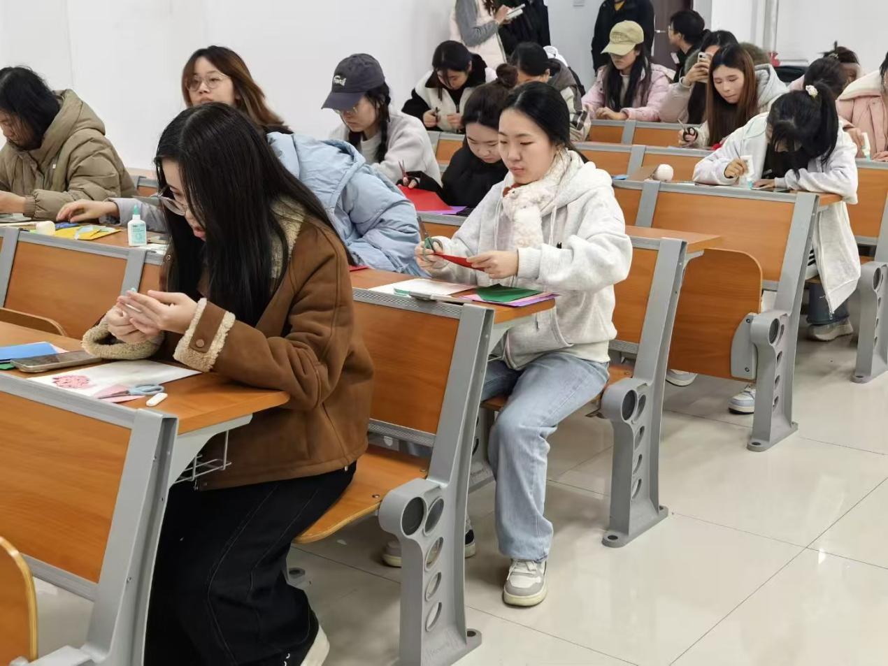 (1)传统民间手工艺展览社团将以手工物品展览的形式向广大师生进行知识科普。(2)大学生传统才艺课每学期社团邀请中原地区的非遗项目传承人进行授课,讲解相关知识,传承技能。目前我社已经开展烙画、剪纸、戏曲、布贴画、面塑、香包、妆发、编簪等多种才艺课。(3)传承部主创普及课社团的传承部会在每天中午带头到非遗协会办公室进行刻纸教学,通过日复一日的练习,力求每一位同学都能掌握纯熟的刻纸技巧,使非遗得到真正地传承、真正地发扬。