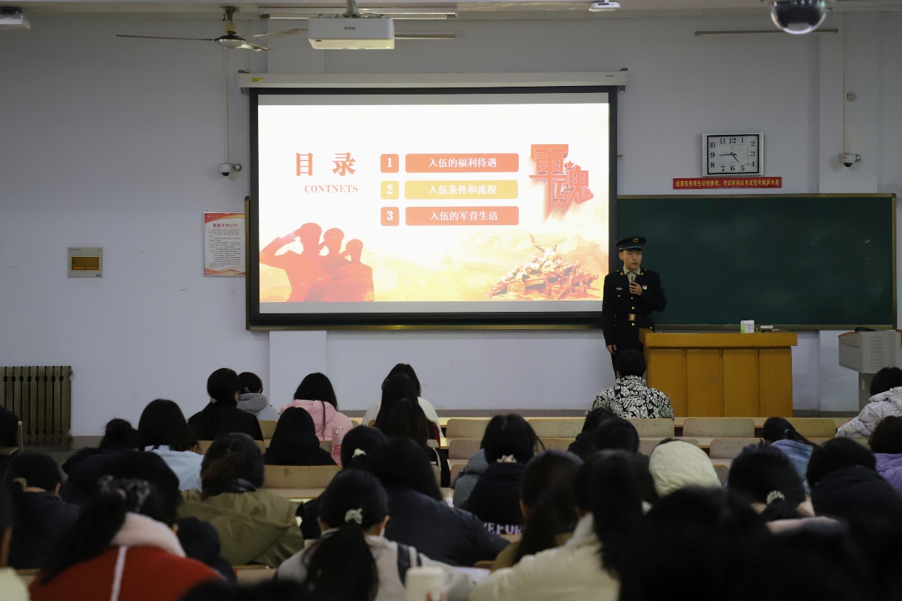 本次宣讲会,不仅有效加深了毕业生对征兵政策的认知理解,更精准解答了毕业生在入伍条件、发展前景、政策保障等方面的疑问与顾虑,为动员更多优秀学子投身国防事业、助力实现强国强军目标奠定了坚实的思想基础。