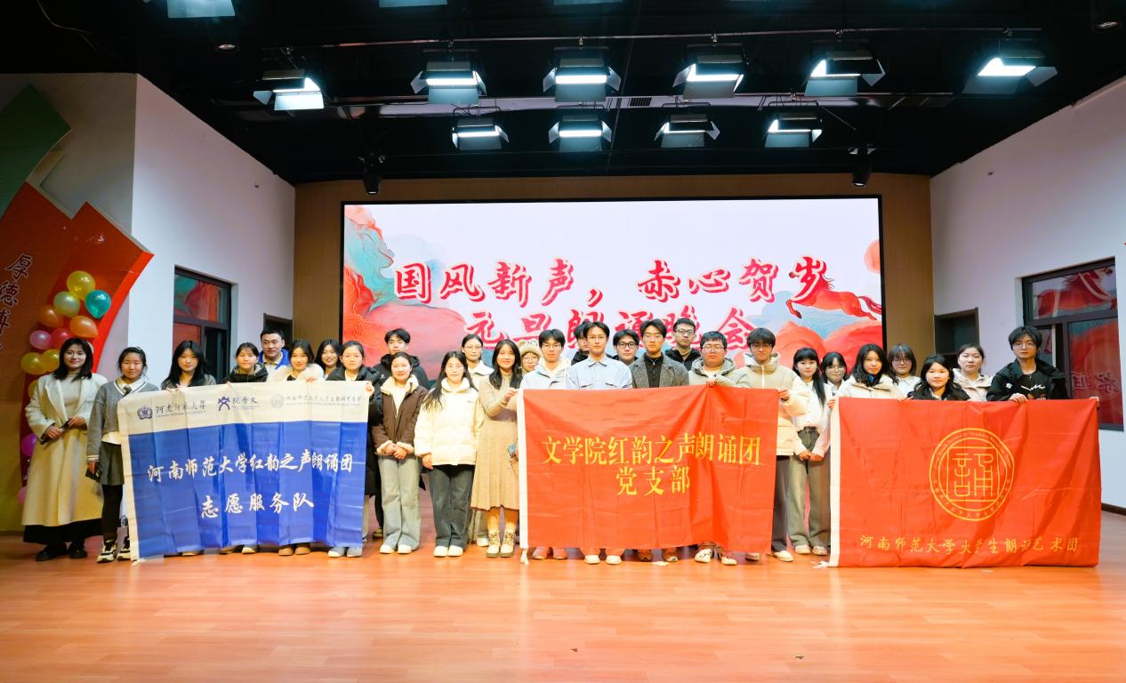 为丰富校园文化生活,营造温馨热烈的元旦氛围,展现文学院学子的青春风采与文化底蕴,我院于2026年1月3日晚,在万人餐厅三楼青益空间成功举办了“国风新声·赤心贺岁”主题元旦联欢晚会,活动由学院大学生艺术朗诵团承办。一场融合了朗诵、舞蹈、小品、歌曲、配音等多种形式的文艺盛宴,为师生带来了别样的新年视听体验。