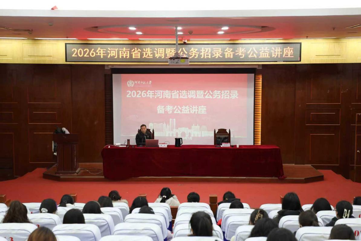 为精准对接毕业生考公考编需求,切实提高就业指导服务精准性与时效性,1月6日下午,我院在东校区模拟法庭举办2026年河南省选调暨公务招录备考公益讲座。本次讲座由我校政治与公共管理学院副教授、公考辅导专家陈灿老师主讲。