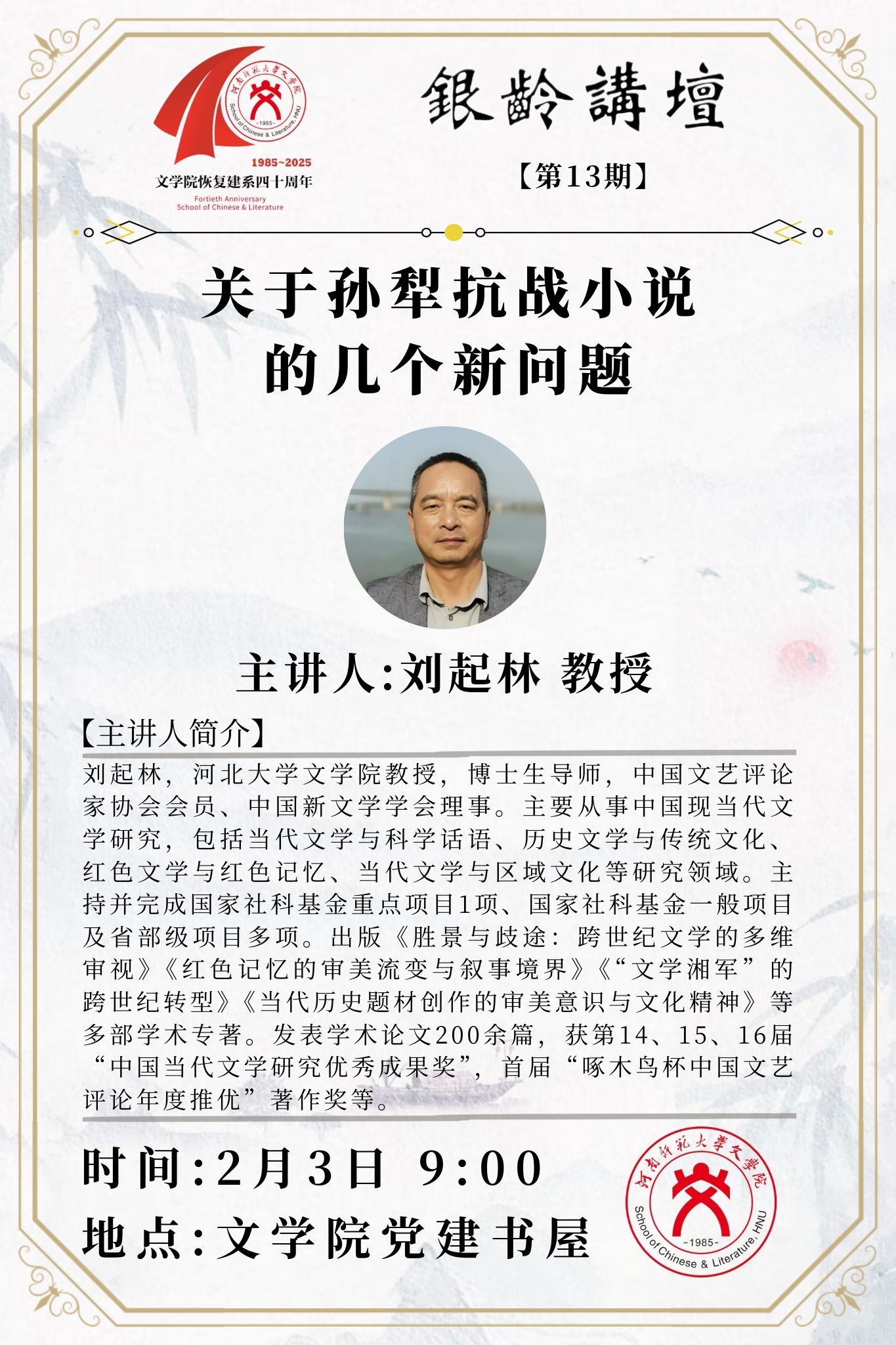 河北大学刘起林教授应邀做客“银铃讲坛”