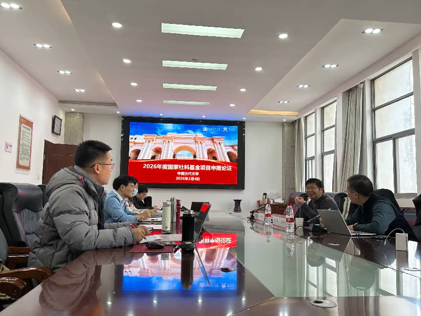 2月4日上午,我院中国古代文学学科在文学院二楼会议室举行2026年度国家社科基金项目申报论证会。论证会由陈鹏院长主持,中国古代文学学科的7位申报教师参加。