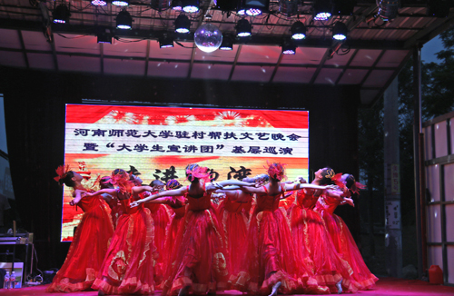 当晚,我校驻村扶帮文艺晚会暨“大学生宣讲团”基层巡演在柳湾村浓情上演,史战芳副书记,参加揭牌仪式的各部门负责人与柳湾村千余名群众一同观看了演出。