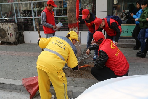 仪式结束后,参加启动仪式的3000余名志愿者纷纷走上街头,深入社区庭院,开展环境卫生整治、公共秩序劝导、“创文”宣传等志愿服务活动。我校志愿服务队分为十余组,在平原路两侧,集中开展了捡拾便道烟头,摆放自行车、电动车等环境整治志愿服务活动,并向临街店面和行人发放了文明创建《致全体市民的一封信》,号召广大市民参与到文明城市共建活动中来。