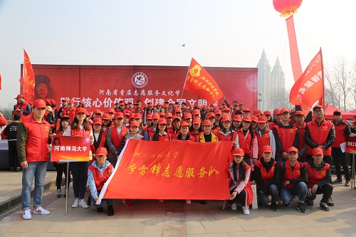 3月17日上午,以“践行核心价值观,创建全国文明城”为主题的2017年河南省首届志愿服务文化节暨新乡市全市志愿服务集中活动启动仪式在牧野广场举行。新乡市委副书记阮金泉致辞并宣布活动启动。市领导丁同民、常冀剀、李瑞霞等出席启动仪式。我校文明办相关负责人和社会事业学院志愿服务队一行50余人,来自全市各行各业的志愿者参加了启动仪式。
