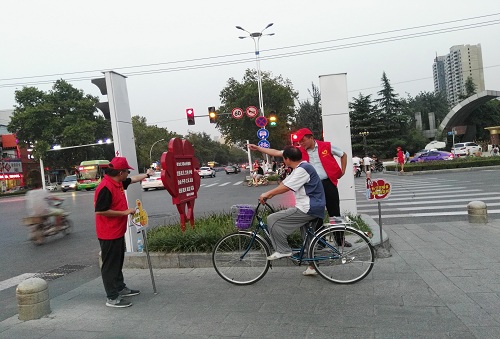 志愿者们按时到岗,身穿志愿服,头戴志愿帽,手持文明交通引导牌,分别在十字路口的四个方位,协助交警维持交通秩序。志愿者们针对交通路口非机动车和行人闯红灯、不走斑马线等不文明交通行为进行了耐心劝导;对行动不便的老人、孕妇进行了细心搀扶。此次文明交通志愿劝导活动秉承了“互助、友爱、进步、奉献”的志愿精神,向市民们传递了社会正能量,为推进新乡市“双创”工作贡献了力量。