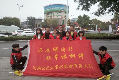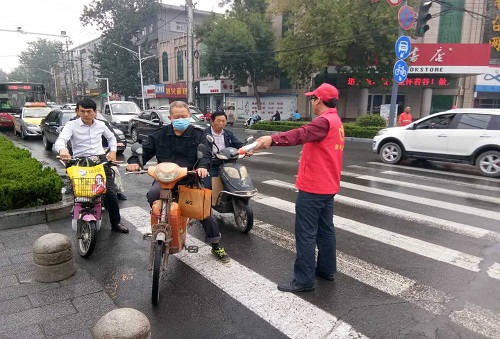互助友爱志愿服务共建新乡交通文明商学院参与深化文明交通志愿劝导活动
