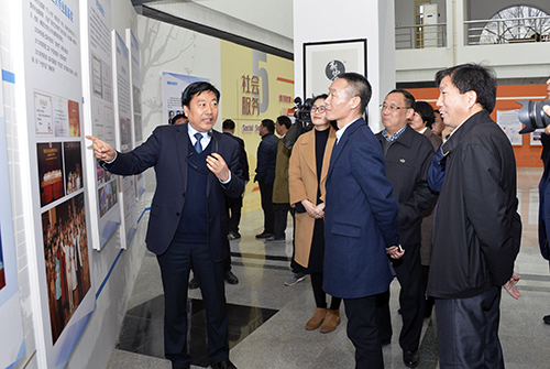 在“双一流”建设成果展厅,陈广文向考察团一行简要介绍了我校双一流建设的成果。他指出,我校以服务经济社会发展和引领基础教育为己任,牢牢把握省部共建的机遇,扎实推进“双一流”建设,在人才培养、科学研究、社会服务、文化传承创新和国际交流合作等方面都取得了优异成绩和长足进步。陈广文强调,我校重视青少年科技创新,鼓励支持学生创新创业,“东芝杯”大赛屡创佳绩,艺术教育三大专业荣获最高奖等。陈广文强调,志愿服务要出成品、出精品、树品牌、育英才,学校要通过志愿服务活动,加强校园文化建设,提升文明创建水平,推动新乡市城市文明建设。