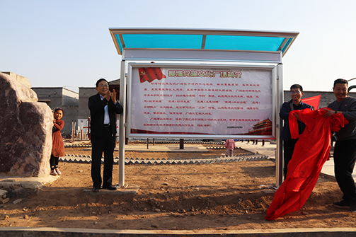 李雪山与杜晓田共同为柳湾村党建文化广场宣传栏揭幕,并向村委会赠送广场题名书法作品。该广场由河南师范大学美术学院规划设计,设计理念着眼“竹韵”象征,以党建文化为主线。规划布局突出“文体”特色,以阵地建设为目标,涵盖全民健身、休闲娱乐、体育运动、广场文艺四大功能。