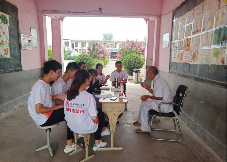 “俺居家坐賏车,用目观,又之见遍地里百草开花”,冯丈村省级非物质文化遗产怀梆戏曲传承人丁家旺一人分饰三角,指导志愿者们唱着本地的怀梆曲目《金花玉瓶》。结束学习怀梆戏曲后,老艺人又向志愿者们描述了历经文革冲击后的怀梆发展情况,不忍文化失传的他加入怀梆“稻花香”剧团。从无条件演出到政府资助发展,社会各方面的重视使老艺人们更加坚定传承好怀梆戏曲的决心。