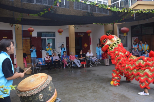 到达养老院后,志愿者们纷纷向老人们问好并传达中秋佳节真挚的祝福。本次志愿活动主要分为节目表演,竞猜灯谜,交流谈心三个环节。在一段精彩的舞狮表演中,本次活动正式拉开序幕,伴随着锣鼓声声,“狮子”左腾右挪,上窜下跳,时而威武勇猛,时而嬉戏欢乐,引得老人们笑声不断、掌声连连。真挚温暖的手语表演、幽默滑稽的相声表演、悦耳动听的歌唱表演、飘逸绝俗的剑舞等多姿多彩的节目为老人们带来一个充满趣味、温馨美好的中秋佳节。接下来的猜灯谜环节,老人和志愿者们积极参与其中,收获乐趣的同时,也感受到传统文化的独特魅力。活动最后,志愿者与老人们亲切交谈,闲话家常,了解老人们身体、生活、饮食等方面的情况,让老人们体会到真诚的关怀,敬老院的院子里一片脉脉温情。活动结束后,老人和志愿者们一同合影留念。