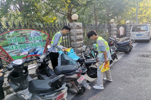 师生志愿者共分为三组,早晨6:30到岗,晚上10:00结束。晨曦微露,志愿者们兵分四路,按照分工对所在路段分别开展清扫,重点清理路面上的果皮、饭菜、纸屑、垃圾袋等杂物。面对垃圾死角,蚊虫乱飞,大家不怕脏不怕累,清理起来毫不含糊。同时,志愿者们还将占用盲道的共享单车、非机动车整齐摆放,认真劝导十字路口行人和非机动车遵守交通秩序、文明礼让。