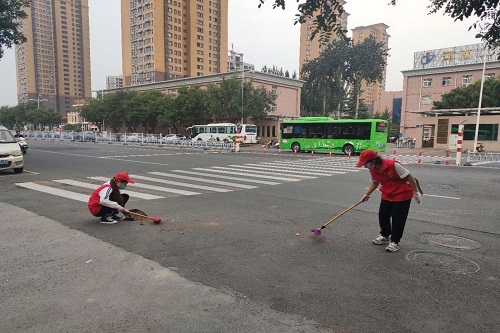 早上七点二十分,第一批志愿者准时来到建设路和平路口,志愿者们迅速进入工作状态分小组开展帮扶工作。一部分志愿者在路口开展文明交通劝导工作,引导非机动车遵守交通工作;另一部分志愿者沿分包路段清扫垃圾,将共享单车摆放整齐;期间志愿者还开展了文明宣传活动,劝导街商户宣传文明经商。下午,第二批志愿者顶着炎炎烈日认真开展帮扶工作。