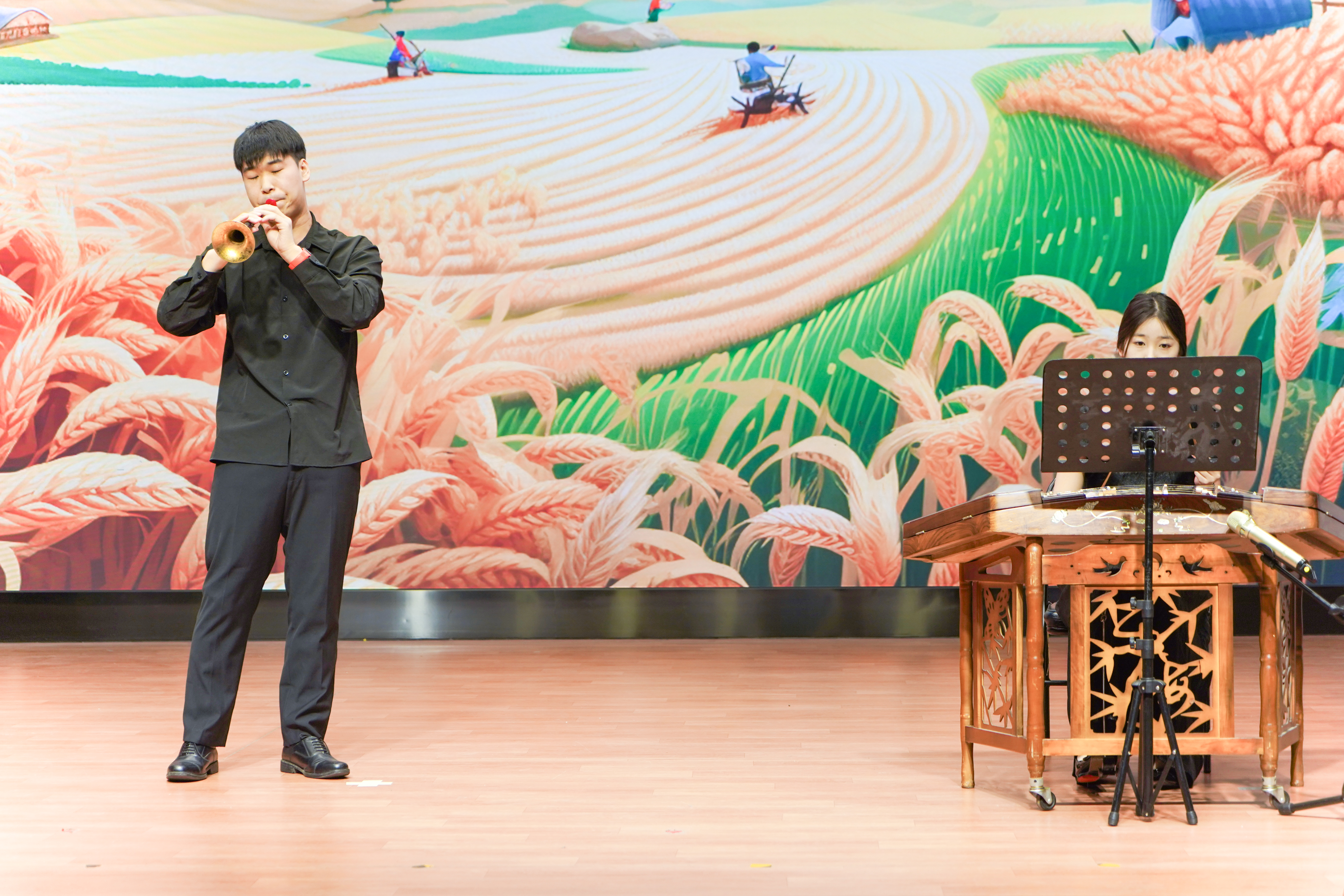 音乐舞蹈学院管乐团演奏的《在太行山上》拉开了展演序幕。第一篇章“初心·为民奉献”围绕太行公仆吴金印事迹与雷锋精神的时代传承展开,合唱《不忘初心》以激昂旋律升华主题,使学员们深刻体悟中国共产党人为人民服务的根本宗旨;第二篇章“明道·信仰之光”聚焦革命先烈方志敏等典型人物,结合舞台剧《信仰的味道》,生动诠释了共产党人坚如磐石的理想信念,演员们真挚的表演让信仰的力量可感可知;第三篇章“力行·青春建功”聚焦学校育人实践与西部支教故事,展现新时代青年将个人理想融入国家发展的担当。唢呐合奏《在希望的田野上》以昂扬的节奏传递出青春的朝气与希望,激励大家在祖国最需要的地方建功立业;第四篇章“传承·铸魂未来”通过青年志愿行动与文化自信的生动展现,凸显新时代青年传承红色基因、坚定文化自觉的实践。歌伴舞《领航》压轴登场,以恢弘气势与深情演绎,唱响了新时代新征程的奋进强音,激励青年学子勇担使命、谱写新篇。整场展演将艺术表达与党性教育深度融合,使大家在沉浸式体验中重温党的奋斗历程,感受精神伟力。学员们纷纷表示,将以此次学习为起点,不断提升政治素养,强化责任担当,以实际行动争取早日加入党组织。